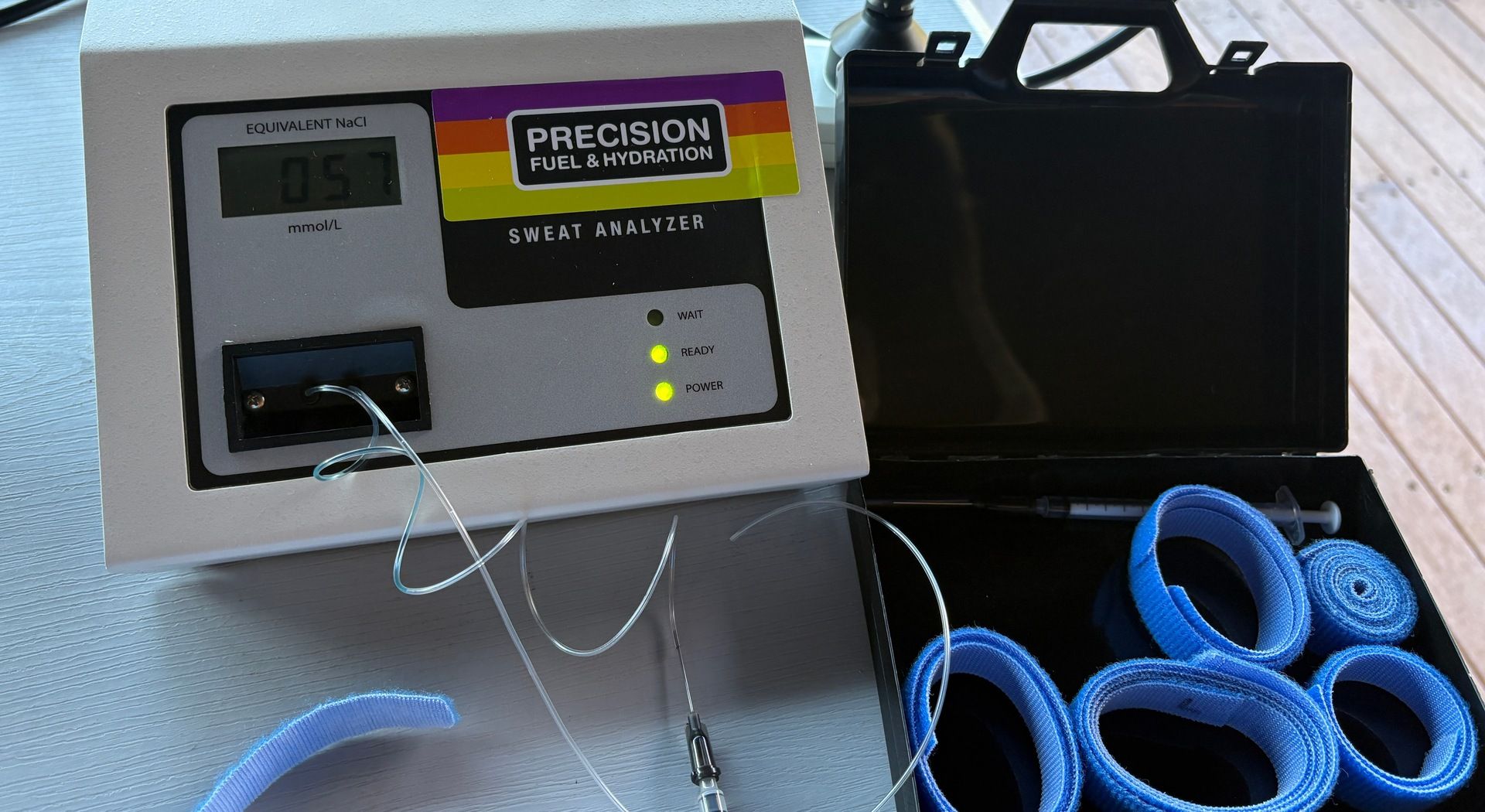 In my case, it didn’t take long for the tube to fill with enough sweat to move to the next step. This involved putting the collected sweat into a conductivity analyser. This measures the sweat sample’s resistance to the flow of electricity.